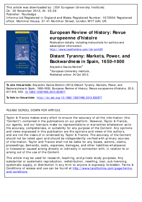 (PDF) [2013] Review of: GRAFE, R., Distant Tyranny: Markets, Power, and ...