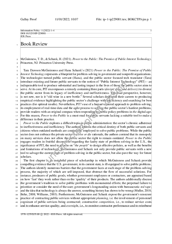 (PDF) McGuinness, T. D., & Schank, H. (2021). Power to the Public: The ...