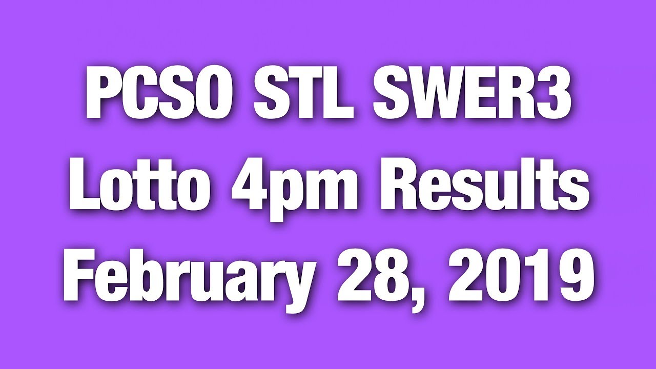 PCSO Lotto STL Swer3 4pm - February 28, 2019 Draw Results - YouTube