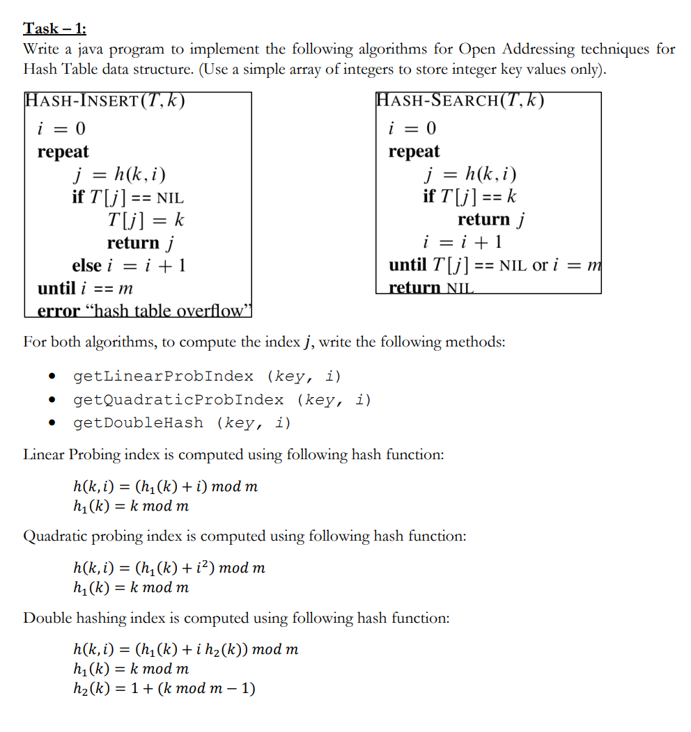 Solved Task - 1: Write a java program to implement the | Chegg.com
