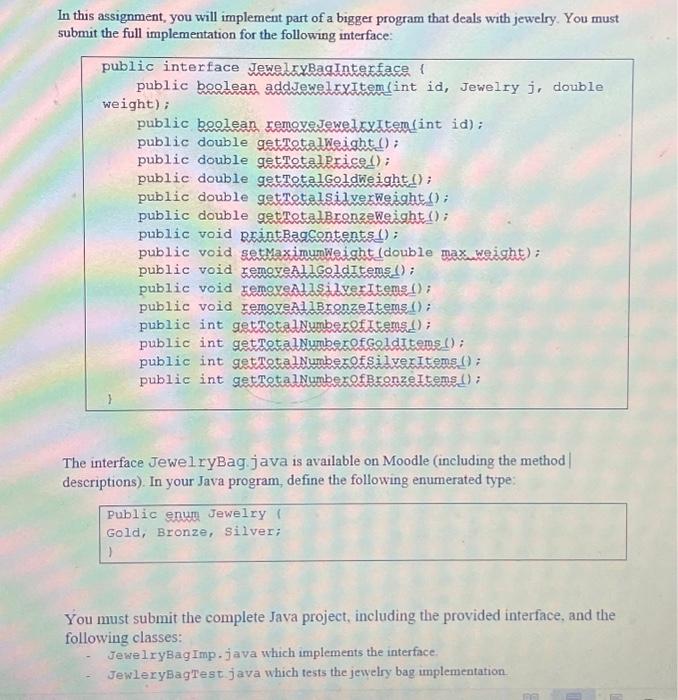 Based on this image's title: “Solved Your task in this assignment is to implement a java | Chegg.com”