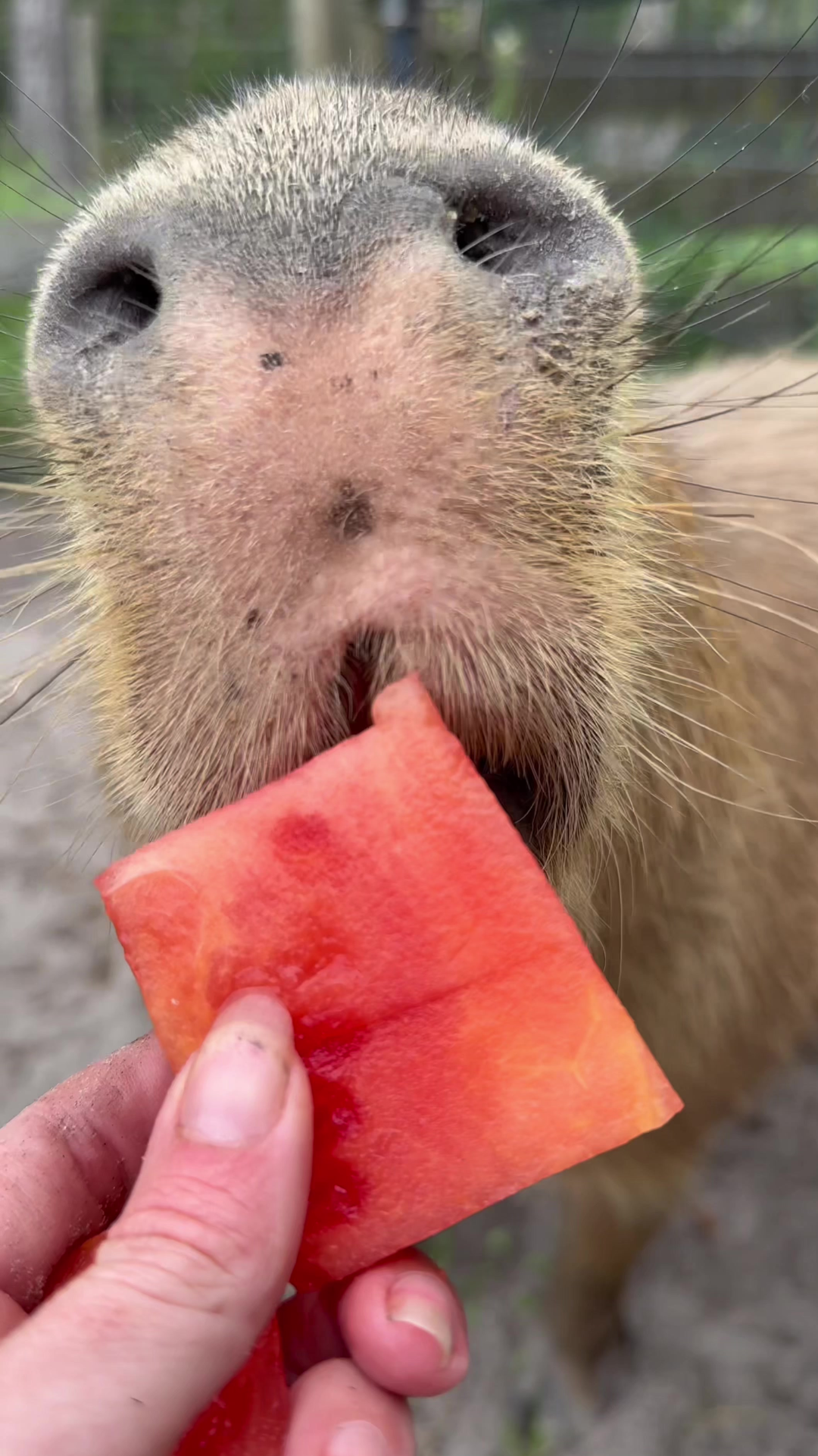 Pumpkin the Capybara Enjoys Watermelon Snack Behavior
