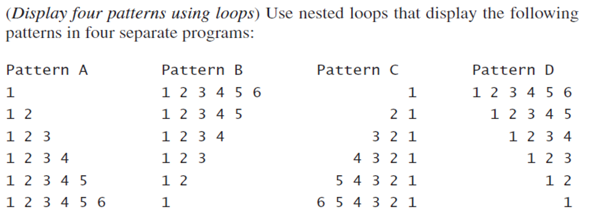 Solved (Display four patterns using loops) Use nested loops | Chegg.com