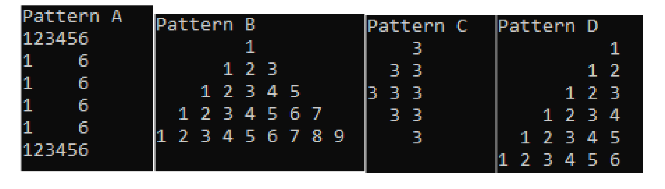 Solved Display four patterns using loops) Ask the user to | Chegg.com
