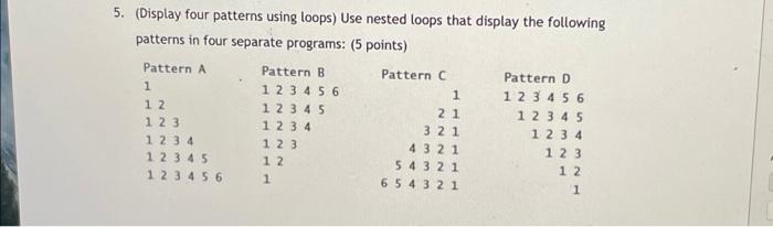 Solved 5. (Display four patterns using loops) Use nested | Chegg.com