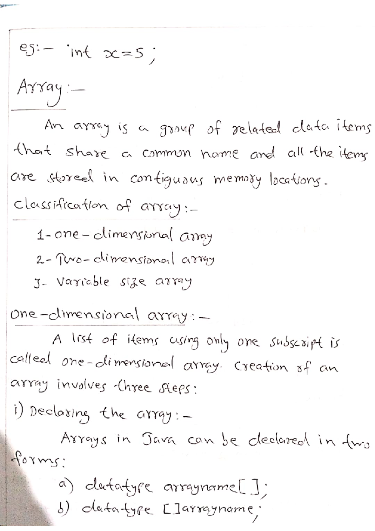 SOLUTION: Java notes on arrays and its types arrays of strins etc with ...
