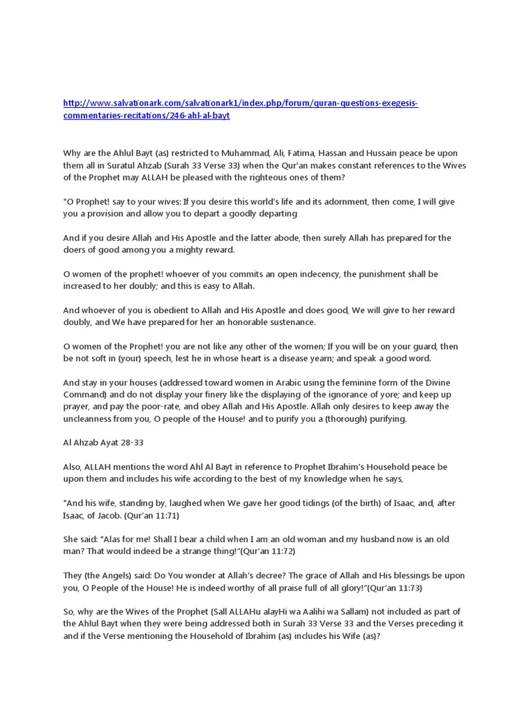 Ahlul Bayt in Surah Ahzab Explained | PDF | Religion & Spirituality