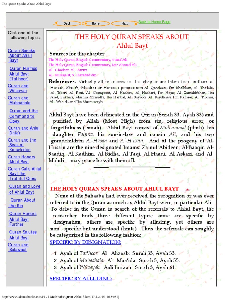 Ahlul Bait A S In The Quran And The Prophets Traditions Sunnah : http ...