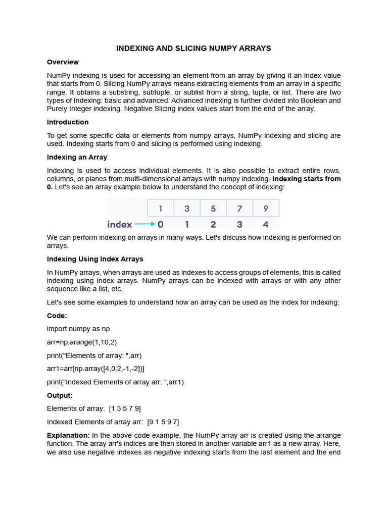 A Beginner's Guide to Indexing and Slicing NumPy Arrays | Course Hero
