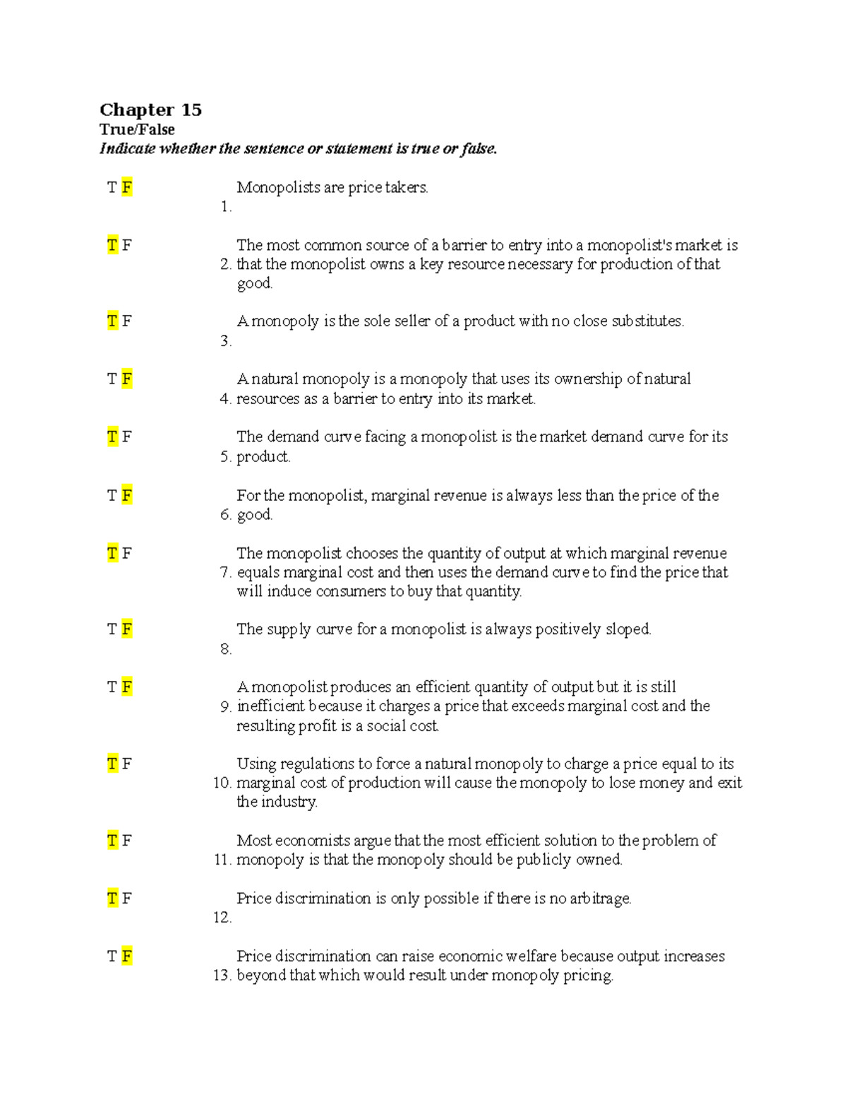Chapter 15 True False ECO111 - Chapter 15 True/False Indicate whether ...
