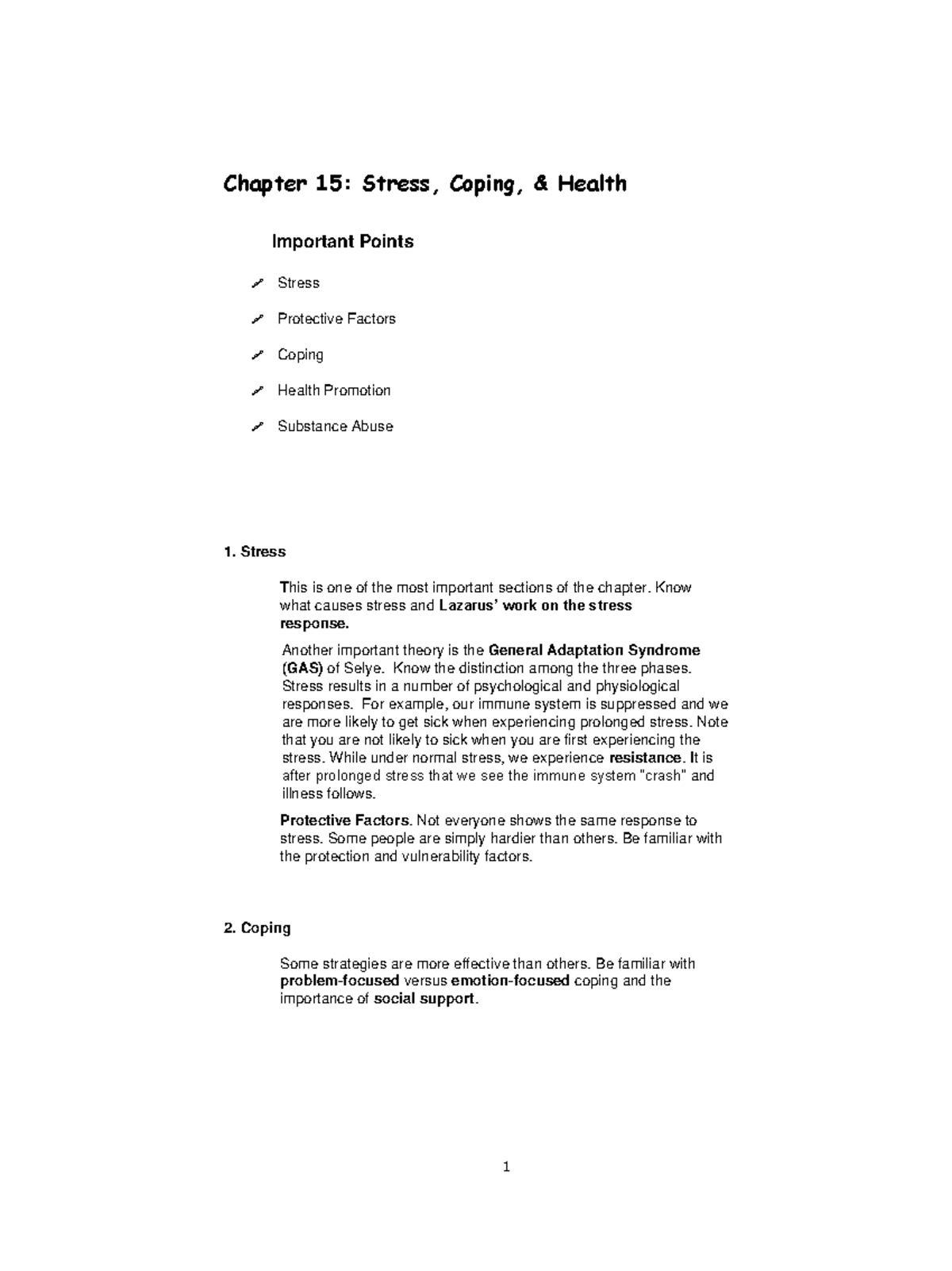 Chapter 15: Stress, Coping, & Health - Key Concepts - Studocu