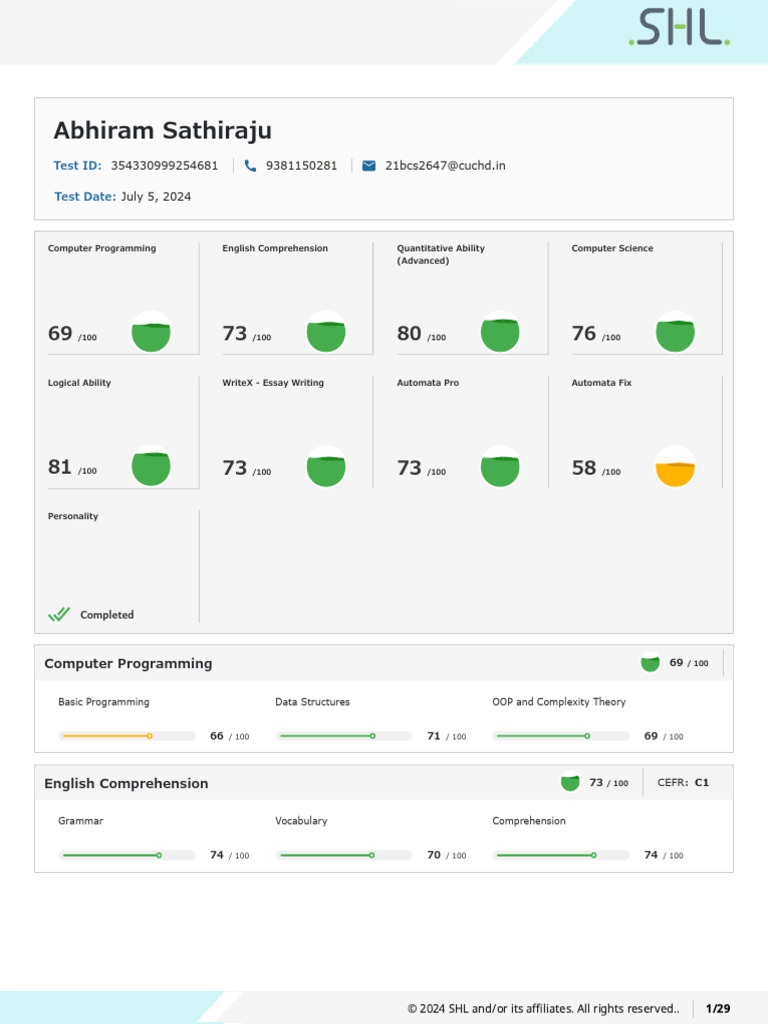 Abhiram Sathiraju - AssessmentCenterReport - 163 | PDF | Computer ...