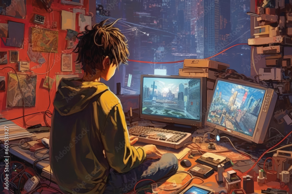 Premium AI Image | Stares of a Teenage Boy Engaged in Programming on ...