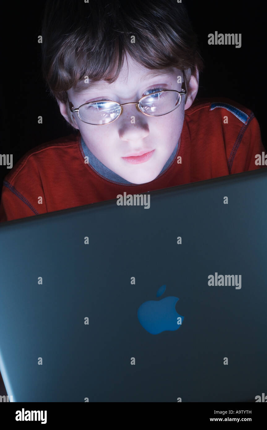 Boy 9 engrossed by a computer Stock Photo - Alamy