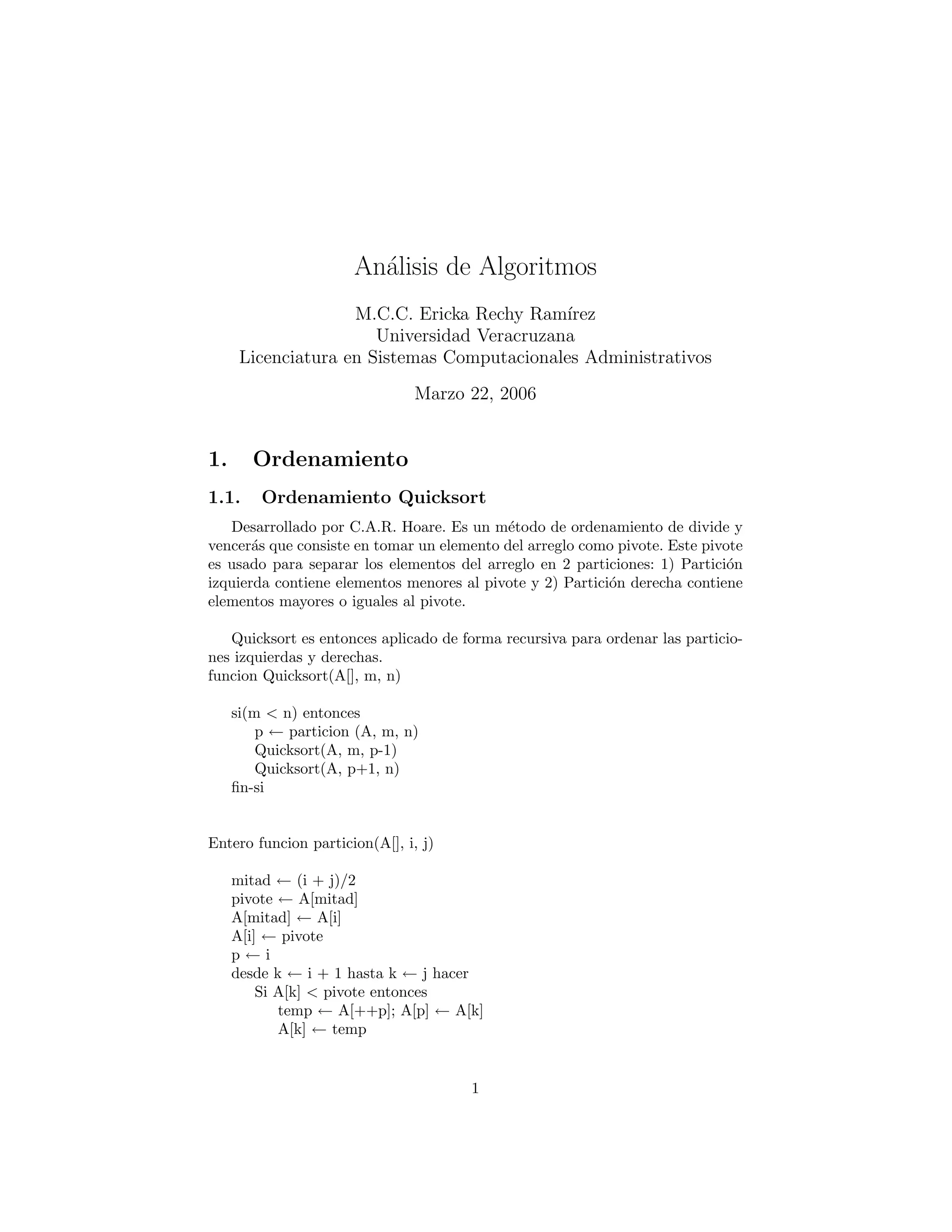 Ordenamiento Rápido o QuickSort | PDF | Algoritmos y Estructuras de ...