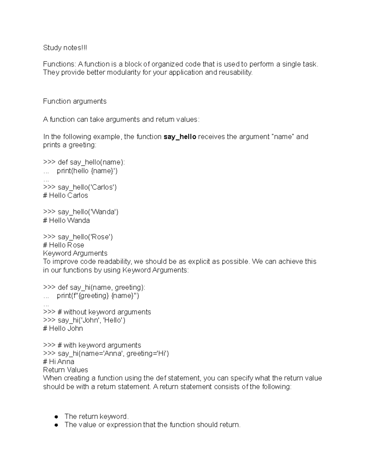 COMP Studynotes - STUDY NOTES - Study notes!!! Functions: A function is ...