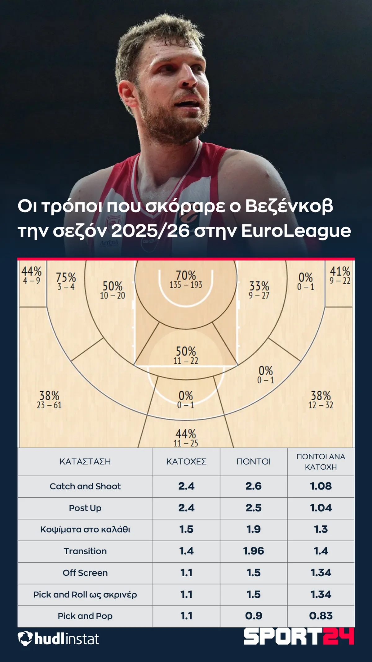 Σάσα Βεζένκοβ: Η ανάλυση της MVP σεζόν του σταρ του Ολυμπιακού