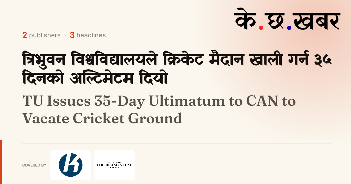 TU Issues 35-Day Ultimatum to CAN to Vacate Cricket Ground · K cha khabar