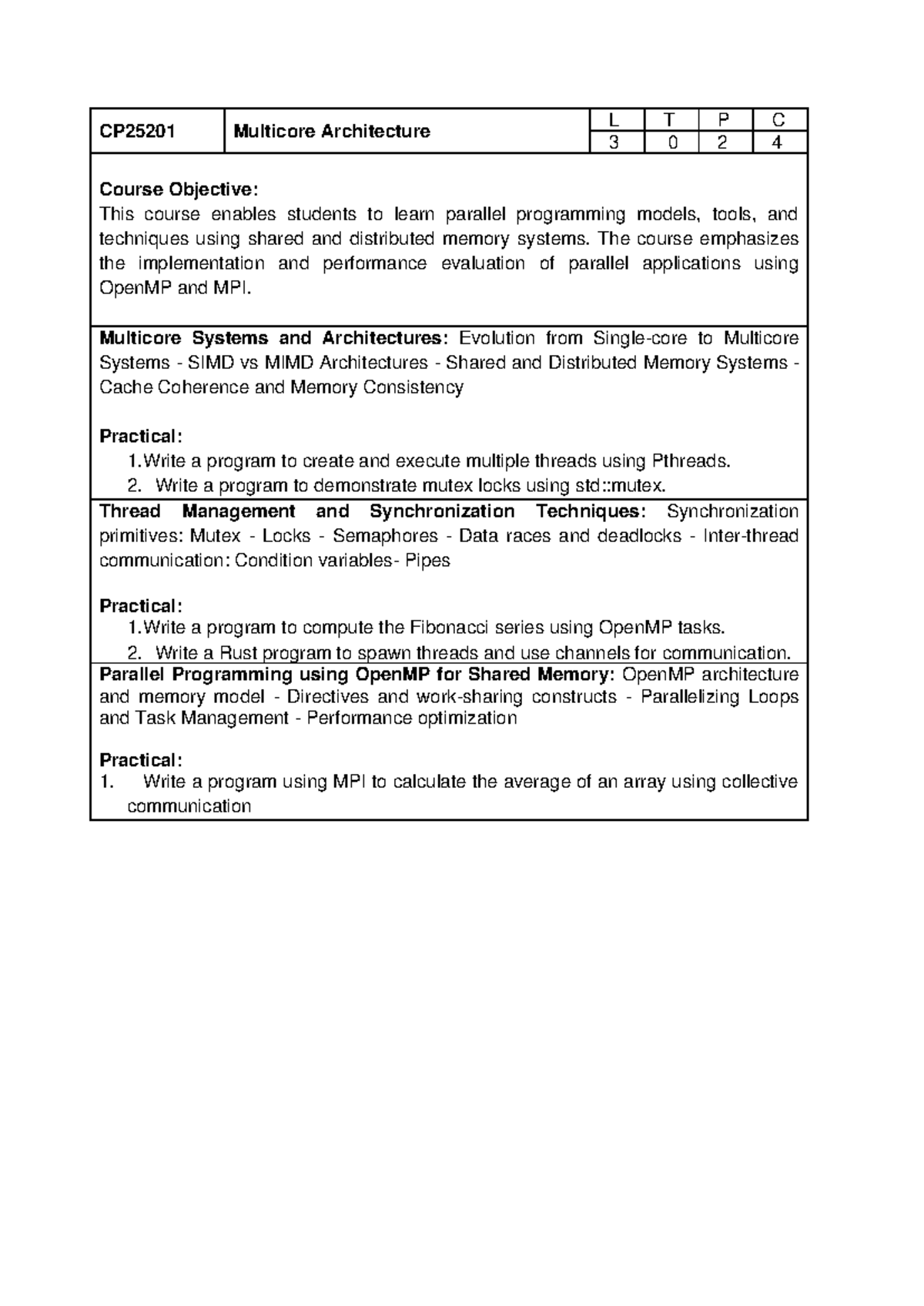 CP25201 Multicore Architecture: Parallel Programming & Performance ...