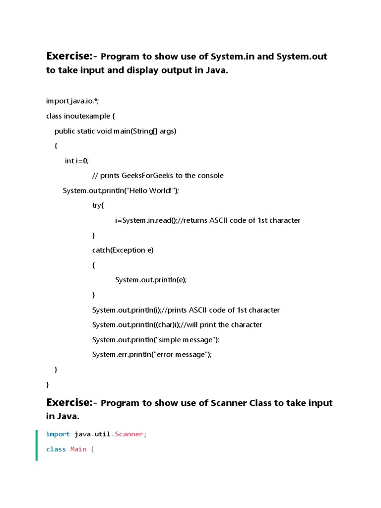 Java Input Output Syste, in Out Console and Scanner Example TP | PDF ...