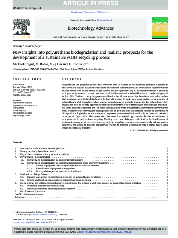 (PDF) New insights into polyurethane biodegradation and realistic ...
