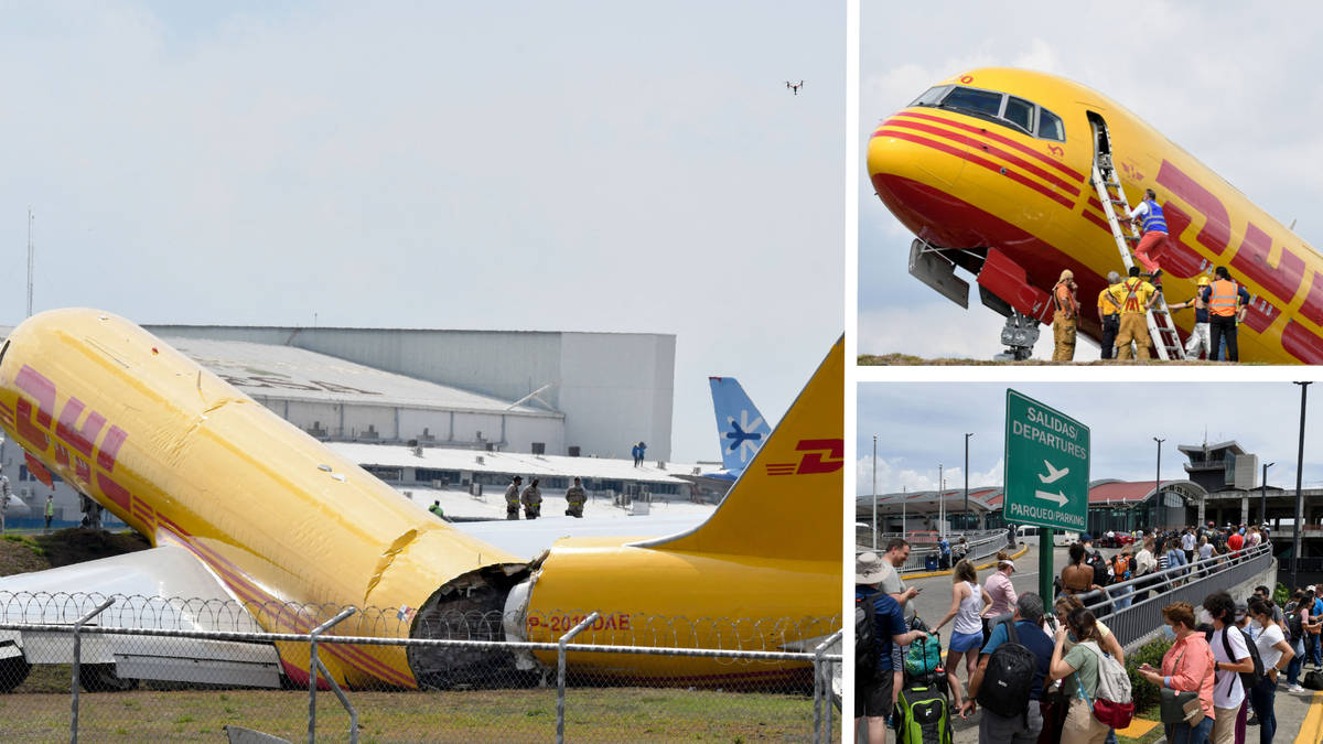 Cargo plane snaps in half after making emergency landing and skidding ...