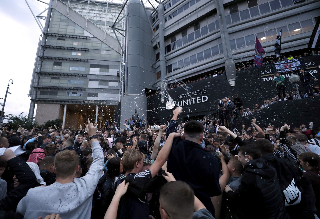 Newcastle United fans celebrate outside St James' Park as Saudi-backed ...