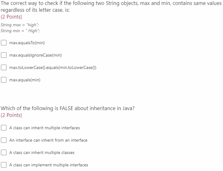 Solved The correct way to check if the following two String | Chegg.com