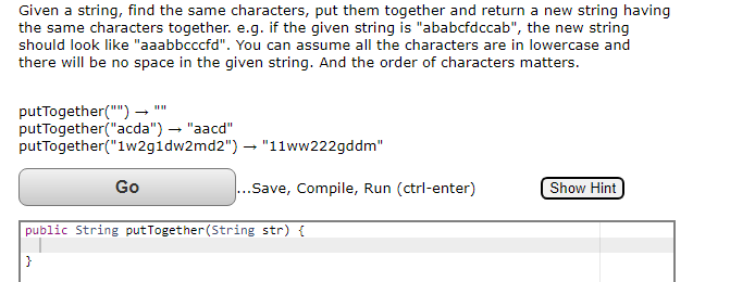 Solved Given a string, find the same characters, put them | Chegg.com