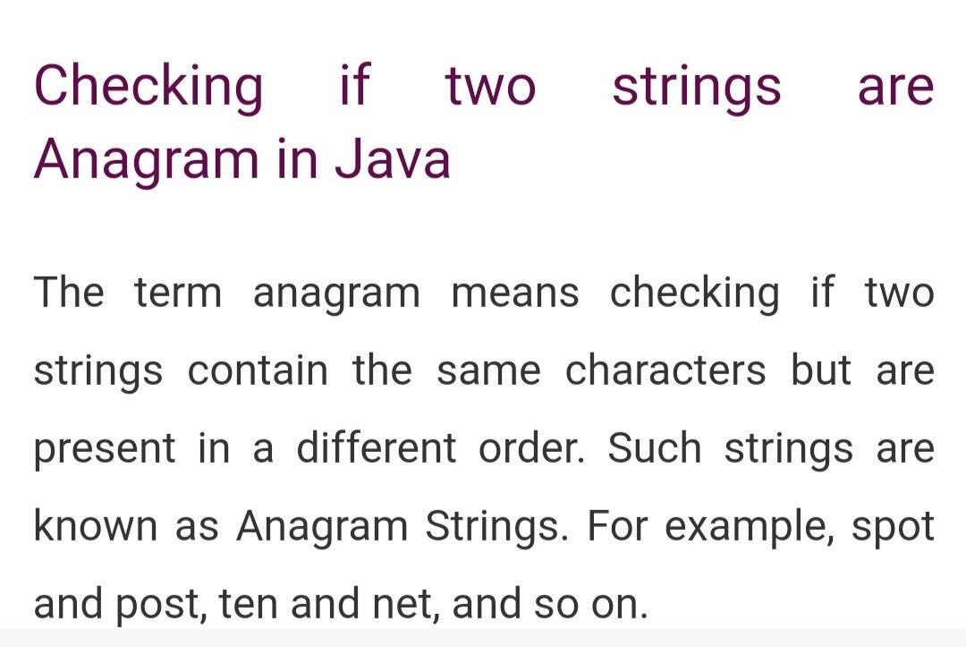 Solved strings are Checking if two Anagram in Java The term | Chegg.com