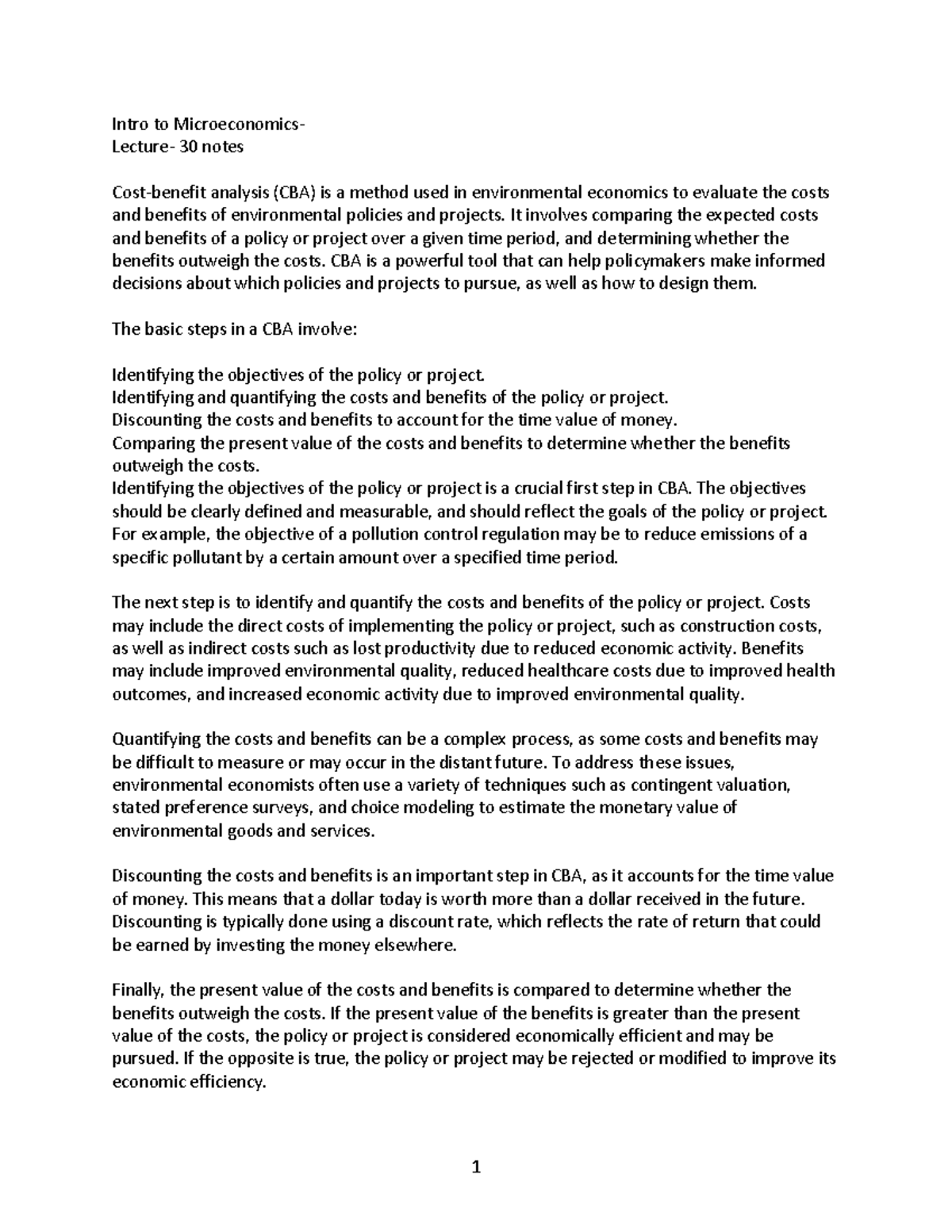 Intro to Microeconomics, lecture-30 notes - 1 Intro to Microeconomics ...