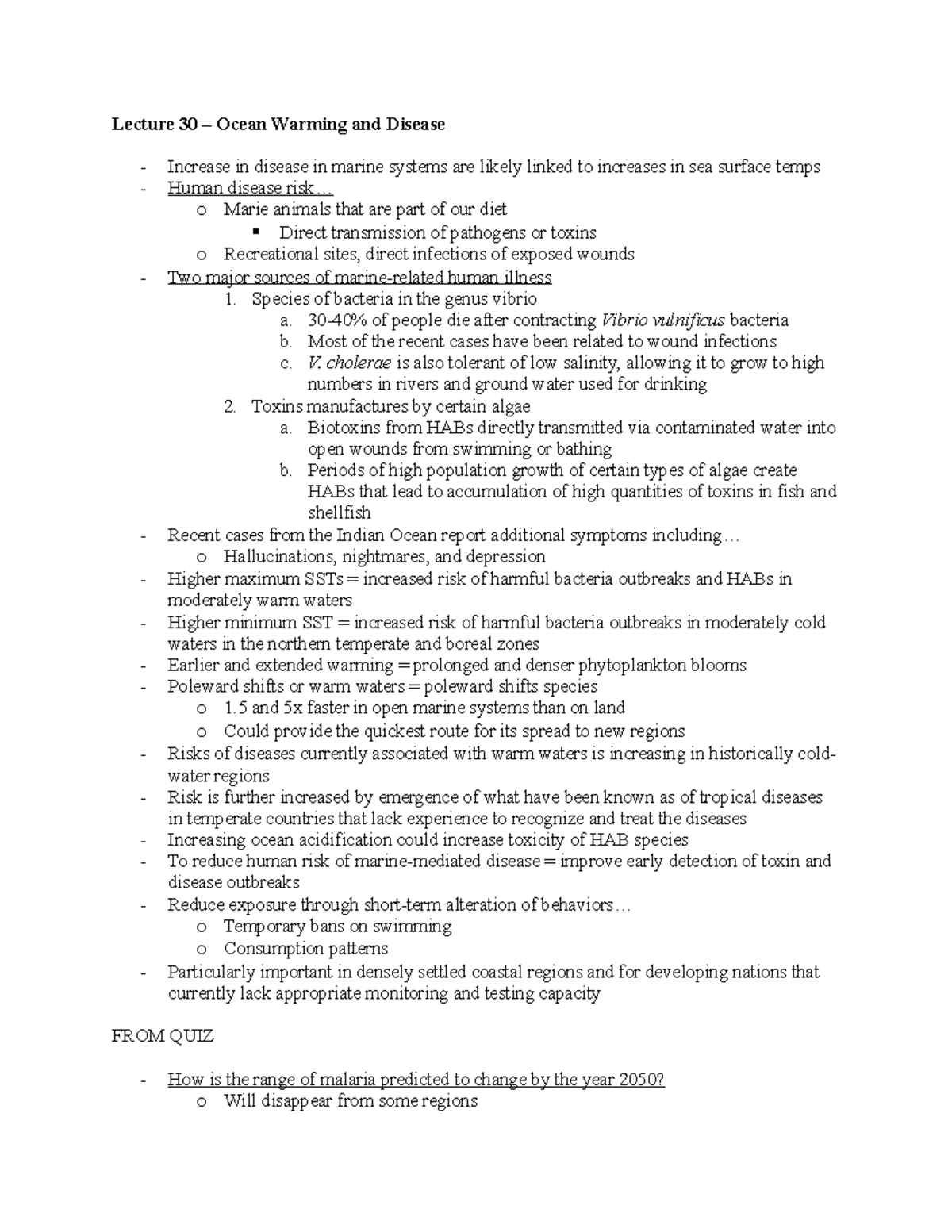 Lecture 30 – Ocean Warming and Disease - Lecture 30 – Ocean Warming and ...