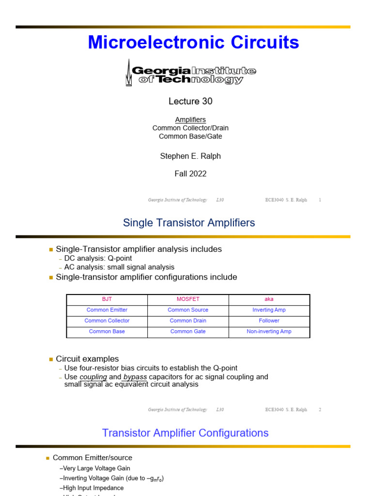 ECE3040 Lecture 30 Amplifiers 2022 | PDF | Amplifier | Electronic Circuits