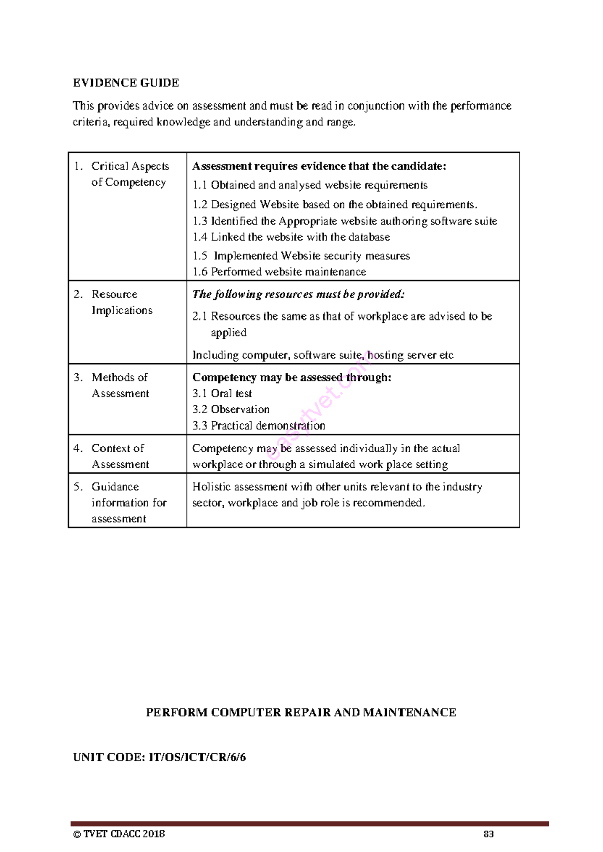 Maintenance - Nothing much - EVIDENCE GUIDE This provides advice on ...