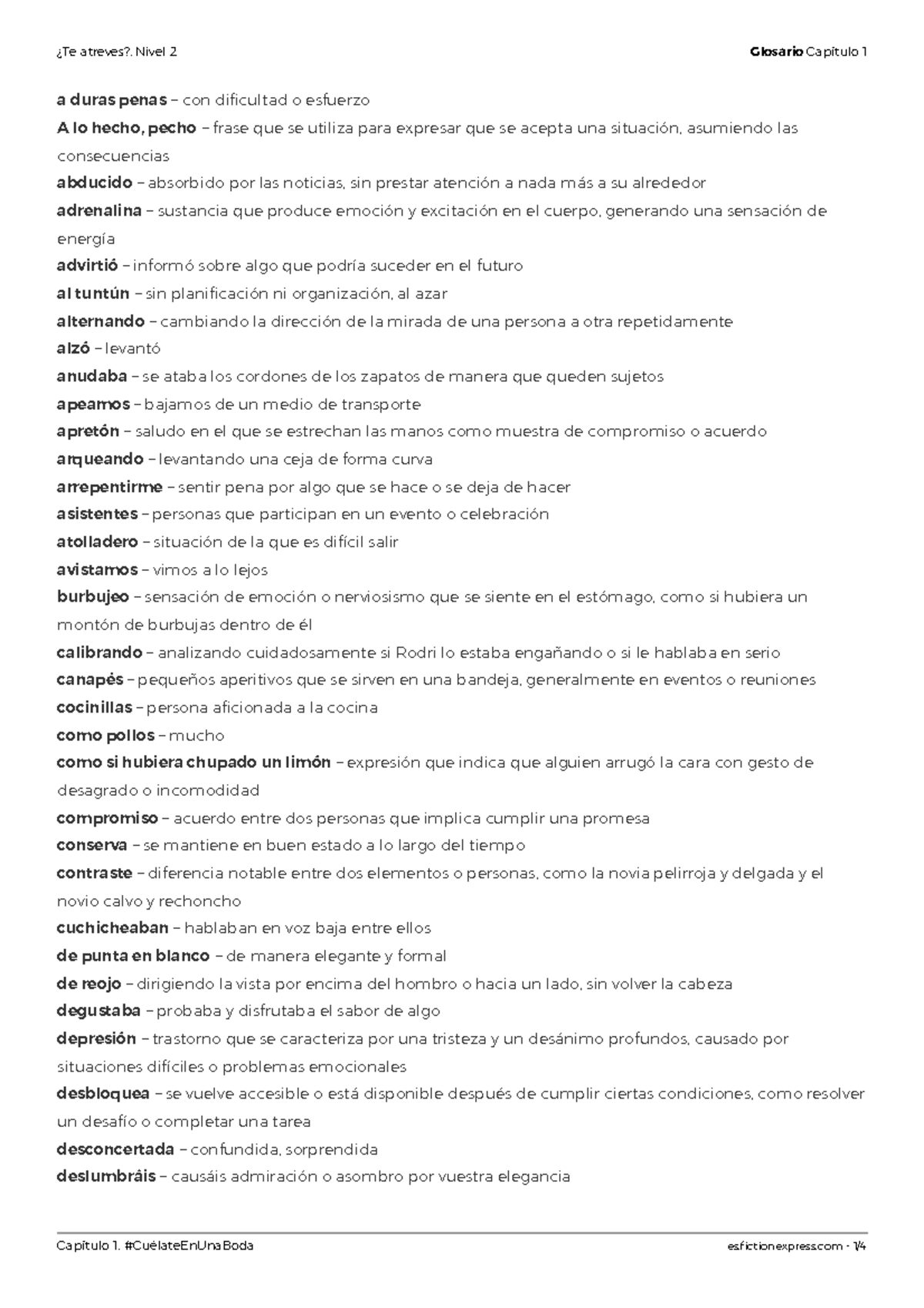 Glosario te atreves capitulo 1 - a duras penas – con dificultad o ...