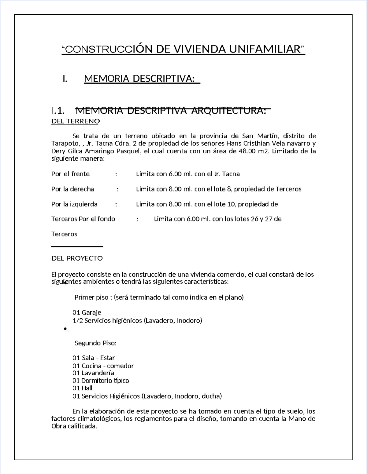Memoria - MEMEORIA DESCRIPTIVA - “CONSTRUCCIÓN DE VIVIENDA UNIFAMILIAR ...