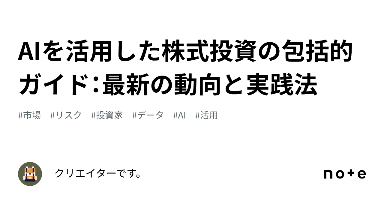 AIを活用した株式投資の包括的ガイド:最新の動向と実践法|クリエイターです。