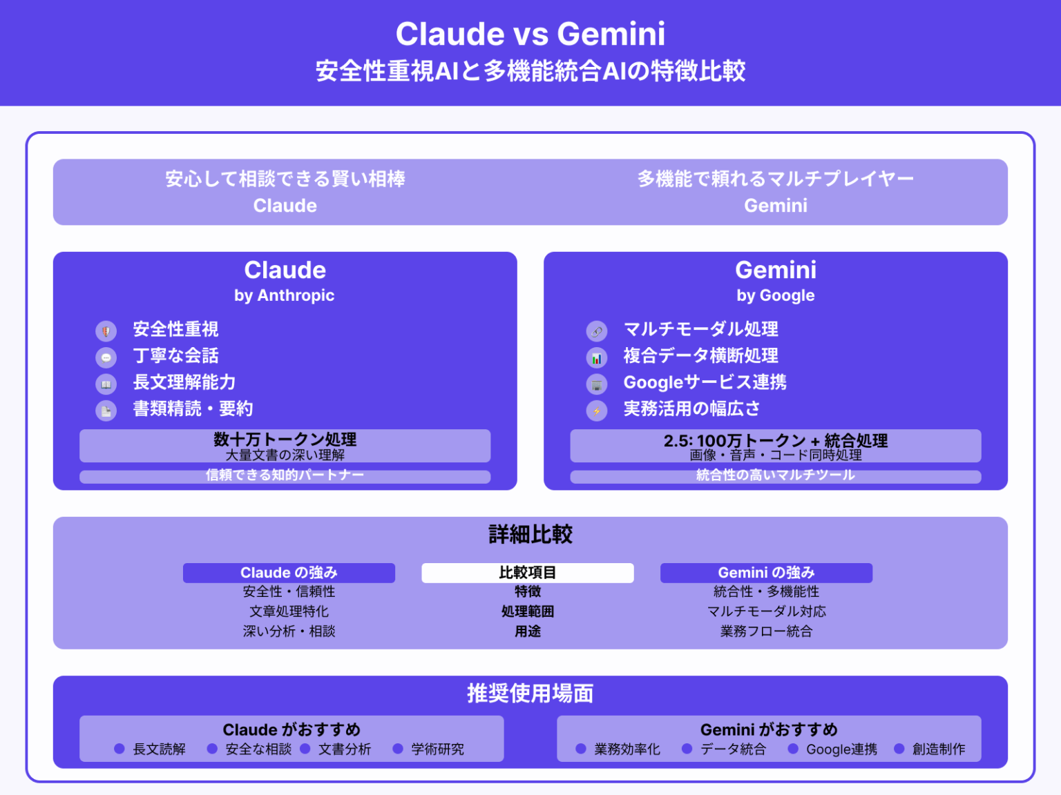 Claude vs Gemini 徹底比較!日本語性能・料金・安全性を本音で検証【2025年最新版】 | AI相談ラボ