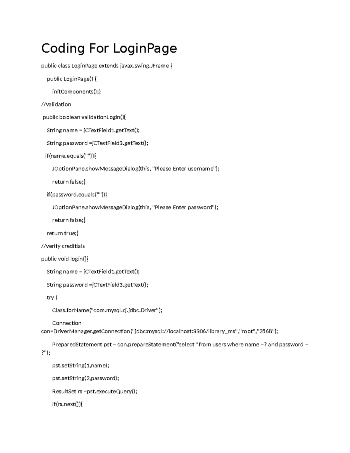 Library Coding Final - Coding For LoginPage public class LoginPage ...
