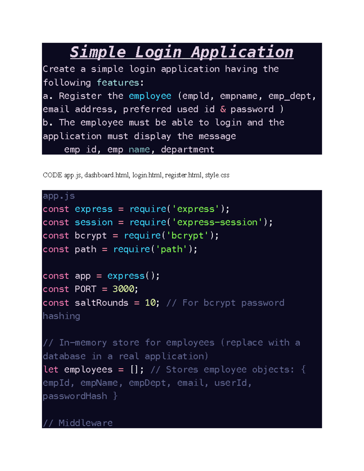 Assignment-5: Simple Login App Development with Features and Code - Studocu