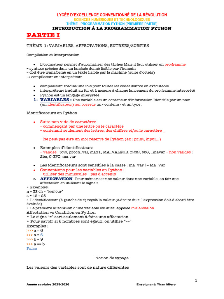 Introduction à La Programmation Python Partie i | PDF | Python (Langage ...