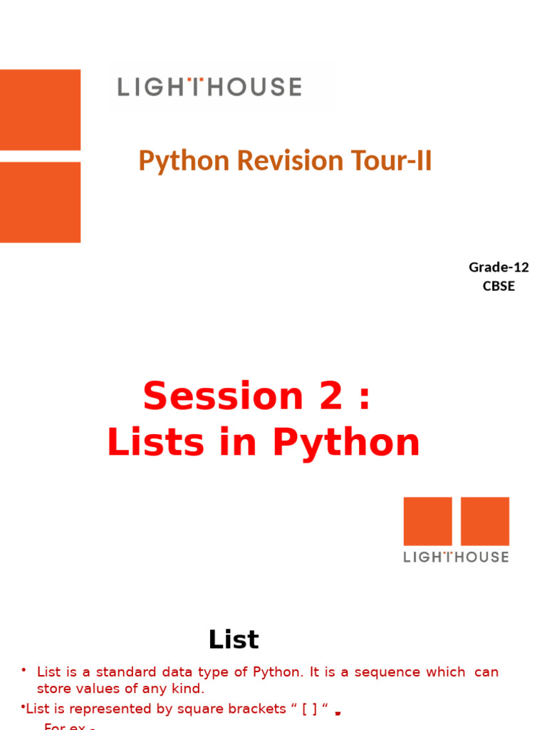 Class-XII || Python Revision Tour-II || Class-4 || Lists in Python ...