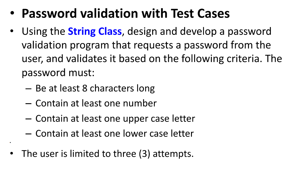 Solved Password validation with Test Cases Using the String | Chegg.com