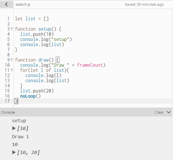 p5.js v1.1.9: list updated after for..of loop gets reflected in the ...