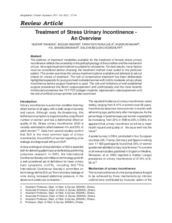 (PDF) Treatment of Stress Urinary Incontinence - An Overview