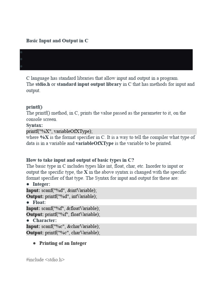 C Programming: Input and Output Basics | PDF