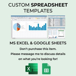Based on this image's title: “Custom Excel Spreadsheet, Custom Spreadsheet Template, Made to Order ...”