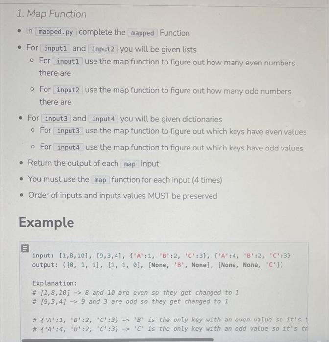 Based on this image's title: “Solved 1. Map Function • In mapped.py complete the mapped | Chegg.com”