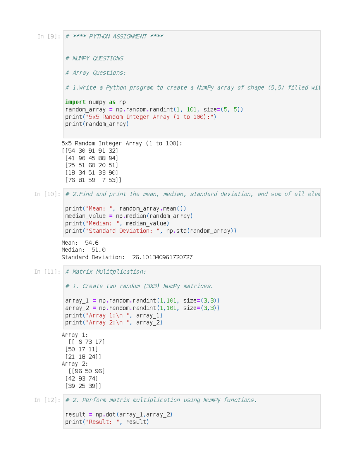 Python Assignment: NumPy Questions and Data Analysis Techniques - Studocu
