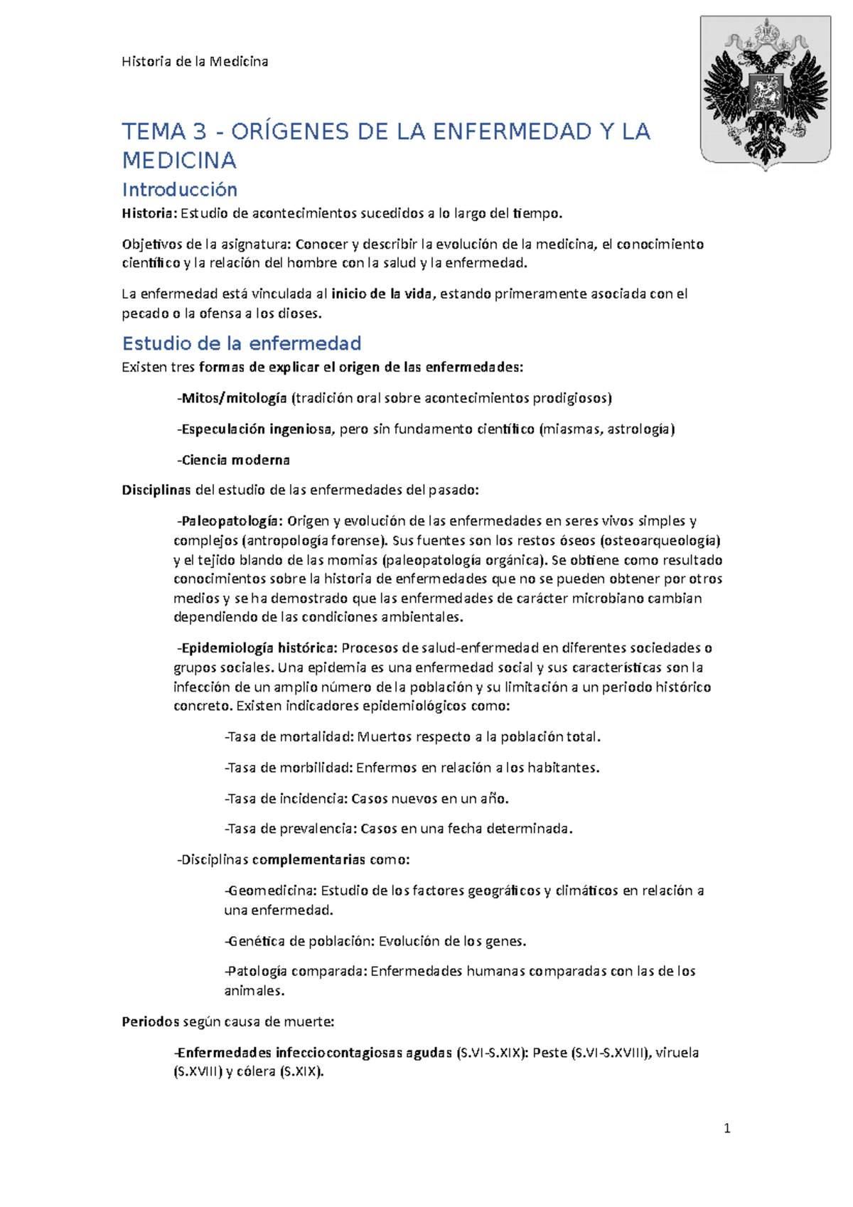 Tema 3. Orígenes de la enfermedad y la medicina - Historia de la ...